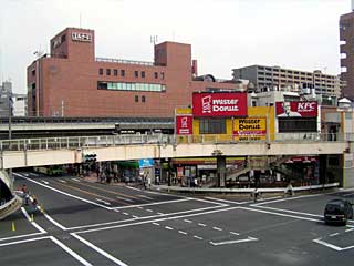 は右画像の茶色い建物。この奥に、JRと東武の改札口がある。