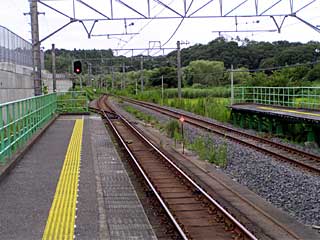 左下画像は、下りホームから銚子方面を見たところ。ホームのすぐ先で上下線が単線に合流しているのがわかる。