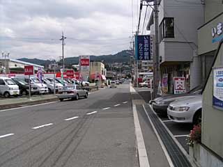 下の2枚が駅前通りである。右へ少し行けば