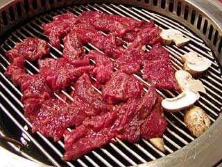 やはり店員さんが焼いてくれるが、今度は店員さんの目を盗んで、焼きすぎない程度のところで肉をつまんでみた。