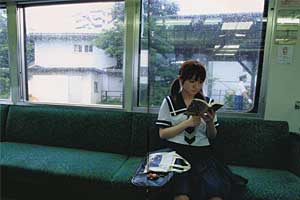 コンコンが電車のシートに座って本を読んでいるカットは、江ノ島駅に停車している江ノ電の車内。 鎌倉方面へ向かう電車に乗っており、車窓から見えるホームが藤沢方面のホームである。 |